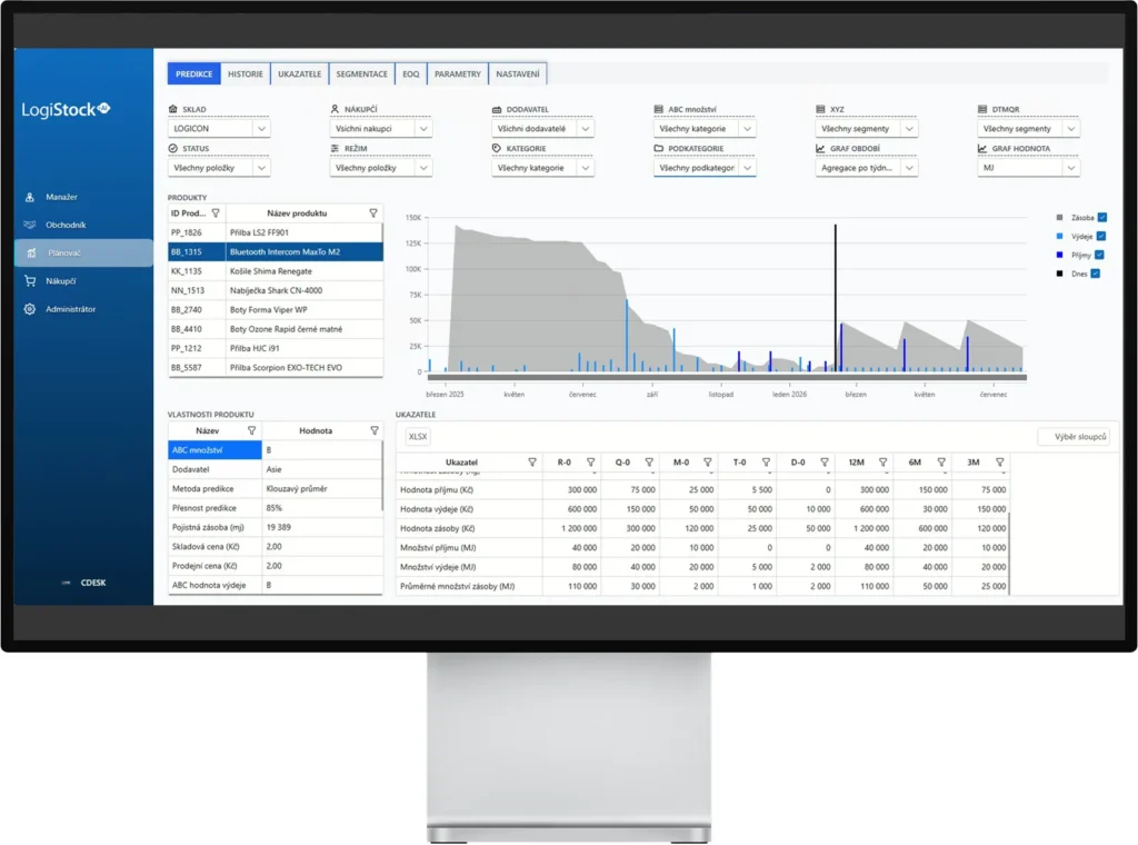 Konec nekonečných tabulek v Excelu. Plánovač získá nástroj, který mu navrhne kvalitní prognózu prodeje nebo spotřeby, hlídá minimální hladiny a snižuje úroveň zásob na základě uplatnění moderních predikčních metod s podporou AI. Je to parťák, který myslí za vás.
